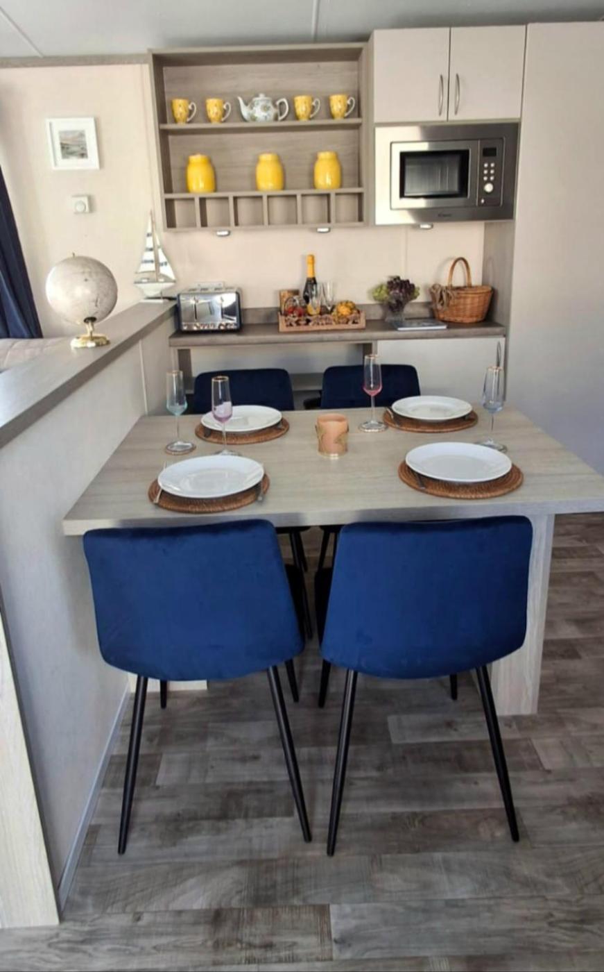 Mobile Home. This mobile home features a tea and coffee maker, a seating area, a flat-screen TV and an outdoor dining area. The unit offers 4 beds.