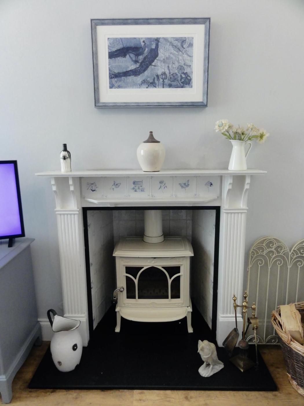 The 1-bedroom holiday home has a living room with a flat-screen TV with streaming services, a fully equipped kitchen with an oven and a microwave, and 1 bathroom with a hair dryer. Towels and bed linen are offered in the holiday home. There is also a seating area and a fireplace.