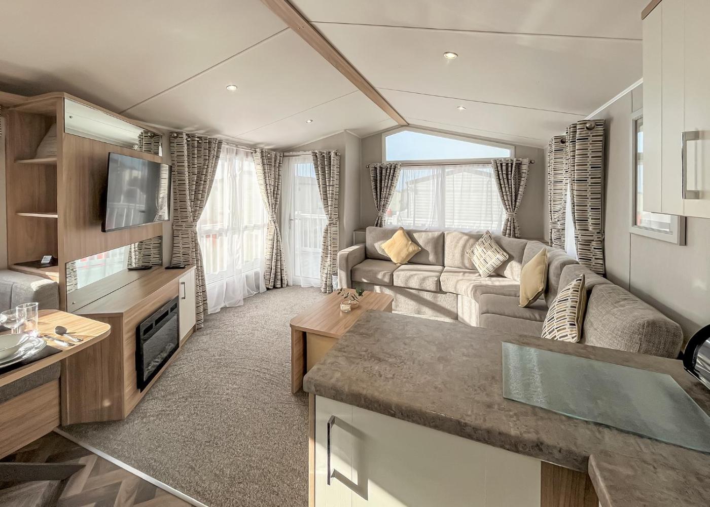 Mobile Home. The mobile home offers heating, as well as a private bathroom boasting a shower. The well-fitted kitchen has a stovetop, a refrigerator, kitchenware and an oven. This mobile home features a TV. ;