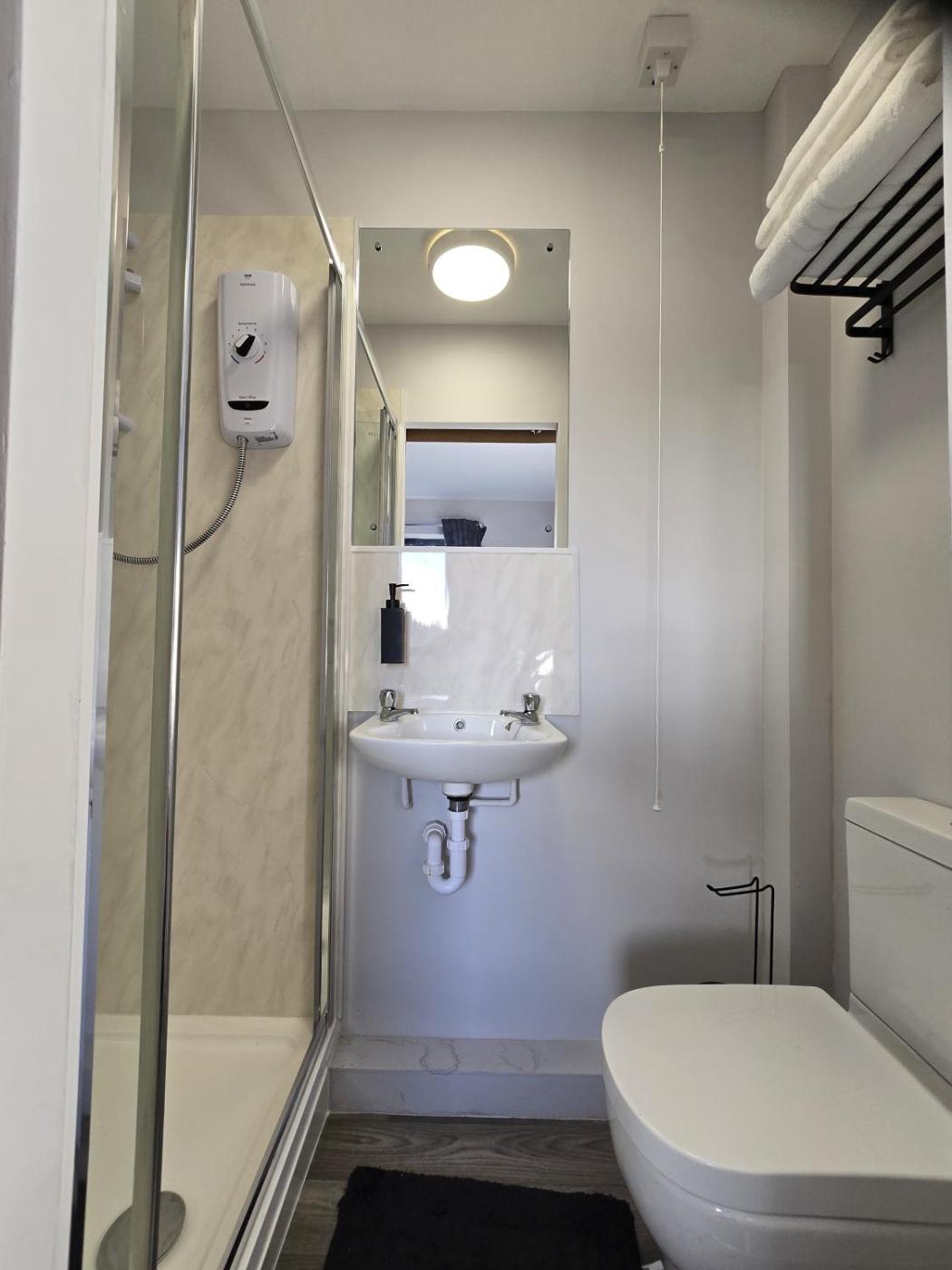 Single Room with Private Bathroom. Featuring free toiletries, this single room includes a private bathroom with a shower. The single room features a dining area, a wardrobe, an electric kettle, heating, as well as a flat-screen TV. The unit has 1 bed.